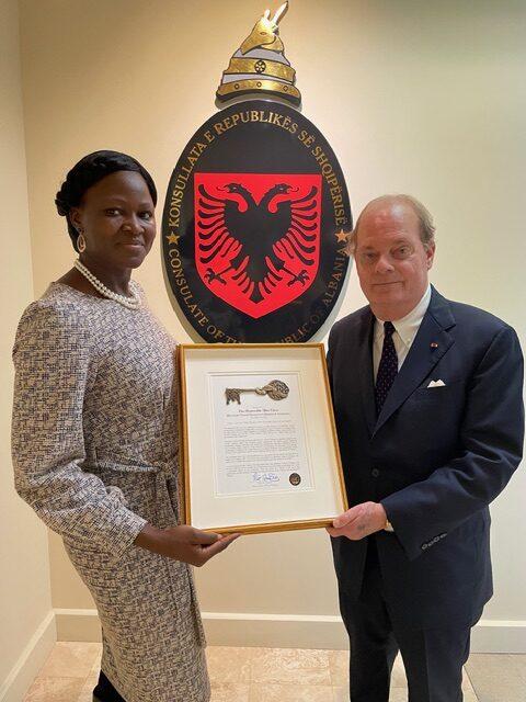 Consul General Rodolphe Sambou and Honorary Consul General of Albania, Bret Clesi received the Keys to the City of New Orleans—a powerful symbol of friendship and shared history between France, the Consular Corps and New Orleans.